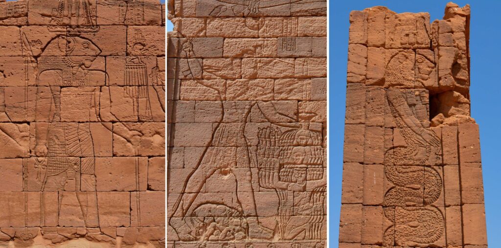 At Musawwarat es-Sufra, he is shown in dynamic scenes of combat, wearing armor and wielding weapons such as bows and swords. In some carvings, he is depicted overpowering enemies or holding captives, visually reinforcing his identity as a divine warrior. These artistic variations are not random but intentional, each highlighting a different aspect of his authority and supernatural nature.