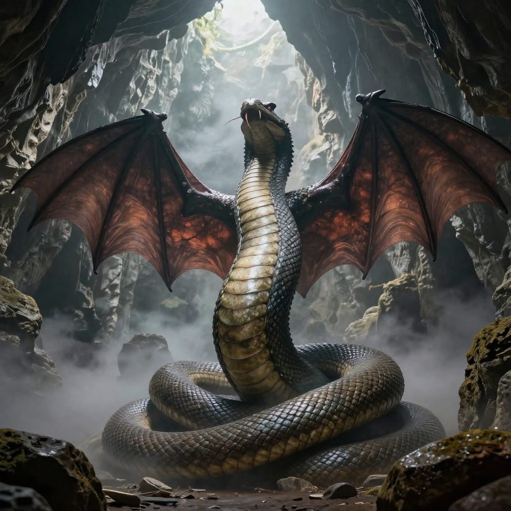 Its scales grant near-total invulnerability, while its wings allow it to patrol vast territories. The creature’s breath is toxic and sometimes fiery, capable of killing animals and ruining crops. Folklore also credits its saliva with transforming into magical stones that can cure illnesses, suggesting a dual nature that balances destruction with hidden benefit.