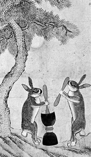 Korean myths focus on tteok (rice cakes), while some East Asian versions describe the rabbit creating an elixir of immortality.