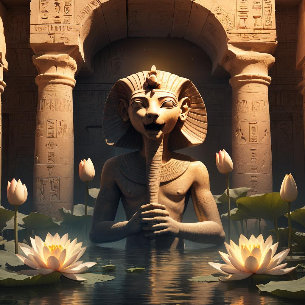 The story and iconography of Harsomtus have also influenced modern art, jewelry, and literature that draw upon Egyptian themes of renewal, energy, and unity. His serpent-lotus imagery appears in contemporary designs as a metaphor for rebirth and transformation, resonating strongly with New Age and esoteric traditions. Academically, Harsomtus is studied alongside other child gods such as Harpocrates and Nefertem as part of the broader exploration of Egyptian cosmogony.