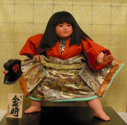 Kintaro is associated with the historical warrior Sakata no Kintoki, though his childhood exploits belong firmly to folklore.