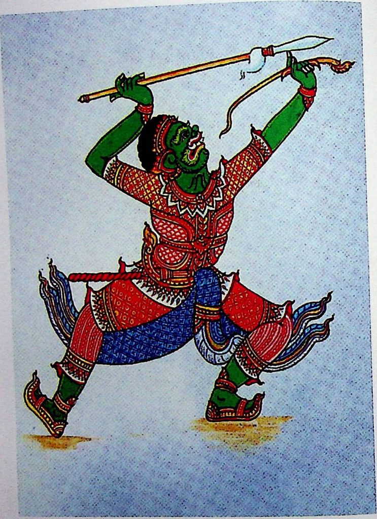 Despite these godlike abilities, his true power lay in his discipline and morality. He repeatedly cautioned Thotsakan against pride and deceit, urging peace over war. However, when duty demanded, he faced Phra Ram’s army with unmatched valor. His death, brought about by a divine arrow from Phra Ram, symbolizes the triumph of dharma over adharma but also evokes deep pathos for a warrior slain for loyalty rather than hatred.