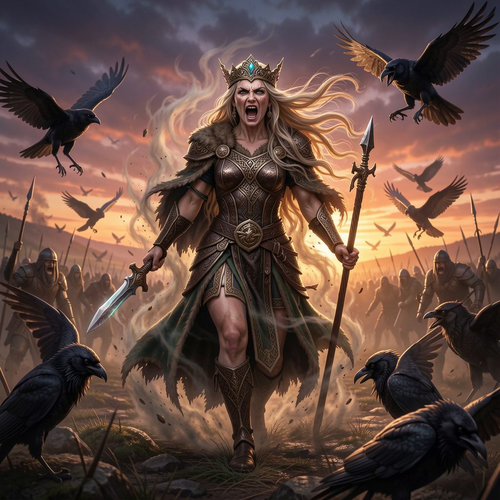Nemain is a war-associated goddess who personifies panic, frenzy, and psychological collapse on the battlefield. Rather than engaging in combat herself, she represents the moment when fear overwhelms discipline, causing warriors to lose control and order to dissolve into chaos.