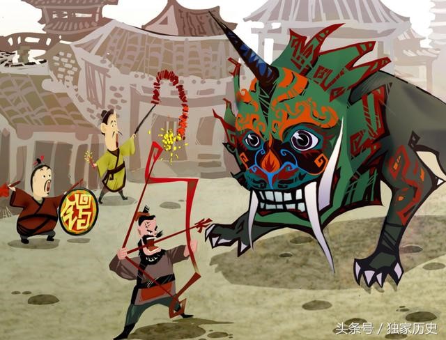 According to legend, Nian emerged every year to attack humans and livestock, and people used loud sounds, bright lights, and the color red to scare it away — now celebrated as New Year customs.