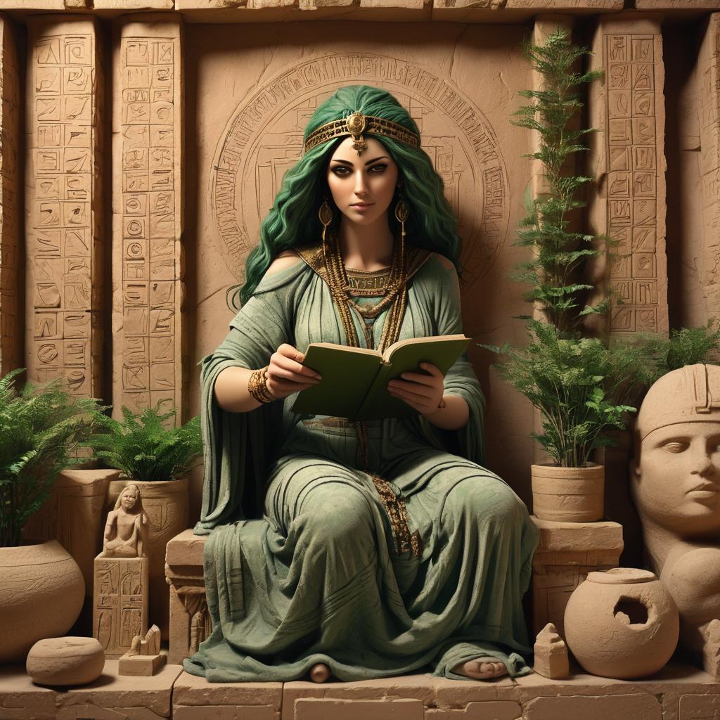 While explicit visual depictions of Ninimma are rare in Sumerian art and iconography, her roles offer indirect clues about how she might have been symbolized. Deities closely linked to writing and birth were typically imagined with their respective instruments of power. In Ninimma’s case, she might have been represented with a stylus and tablet, indicative of her scribal functions, or possibly a knife, alluding to her responsibilities in severing the umbilical cord during childbirth. Some scholars suggest she had associations with vegetation, an aspect that may have inspired depictions incorporating plants or green motifs, reflecting fertility and natural cycles.