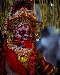 Unlike major pan-Indian gods who have fixed canonical images, Parakutty Chathan’s appearance is shaped largely by oral traditions and ritual art. He is often visualized in Theyyam performances and temple murals as a warrior-like figure, armed with weapons or ritual implements that signify his protective powers. His attire reflects Kerala’s traditional style, sometimes marked by ornaments, sacred beads, and symbolic colors associated with strength and spiritual energy.