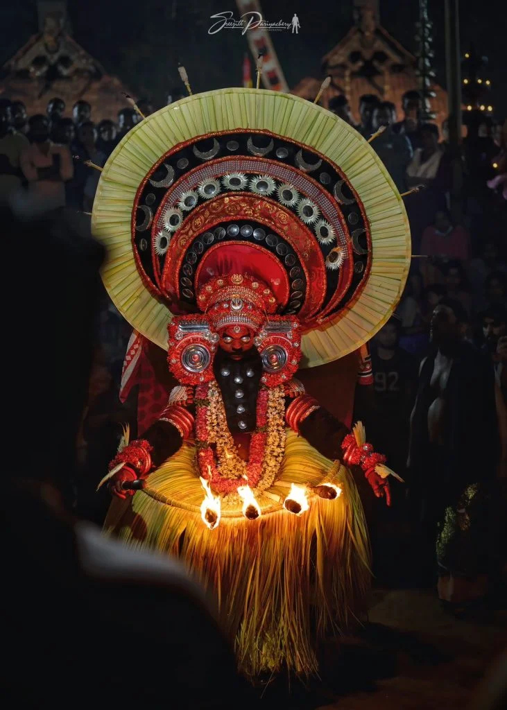One recurring motif in his depictions is his association with animals, especially the buffalo, a symbol of raw power and agrarian significance. His fierce makeup and body art in Theyyam serve to highlight his formidable nature, reminding worshippers of his role as both guardian and enforcer. In many shrines, Parakutty Chathan is imagined seated alongside Vishnumaya Kuttichathan and his divine mother, reinforcing his place within a larger spiritual lineage. These representations, though varied, emphasize his warrior spirit and his function as a deity deeply tied to village life.