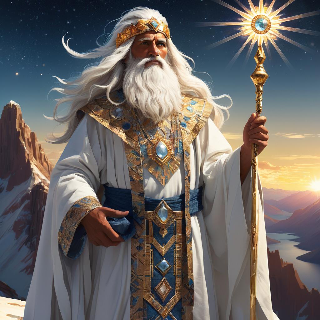 Although Inca sources are not richly detailed on his visual iconography, Spanish chroniclers and later scholarship characterise Viracocha in one recurring image: an old bearded man, clothed in a long robe and carrying a staff, emerging from water. The beard is interpreted as a symbol of a water-god, and his attire communicates dignity and divine wisdom. He is sometimes depicted rising from Lake Titicaca or walking on the Pacific sea, symbolising both origin and departure. In Andean iconography his figure may correspond with the so-called “Staff God” motif linked to the Tiwanaku tradition, though identification is tentative. His appearance blends elements of ancient Andean symbolism (foam, water, sky) with later colonial descriptions that might reflect European influence; nevertheless, the consistent motifs are his emergent form from water, his beard (rare among native deities), and his staff.